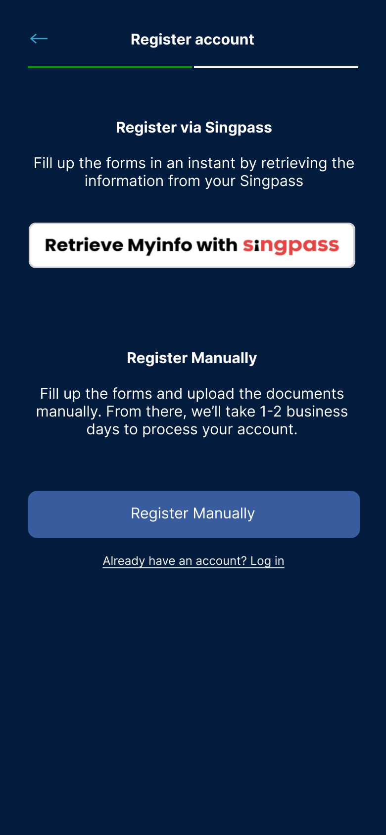 From there, they can choose to manually fill in their details or do so via Singpass.