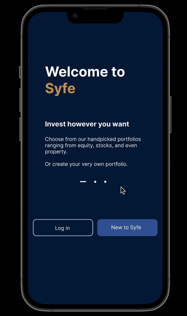 While creating the designs, I’ve opted to retain as much of Syfe’s corporate identity for the UI. You can view the clickable prototype here or from the gif here: