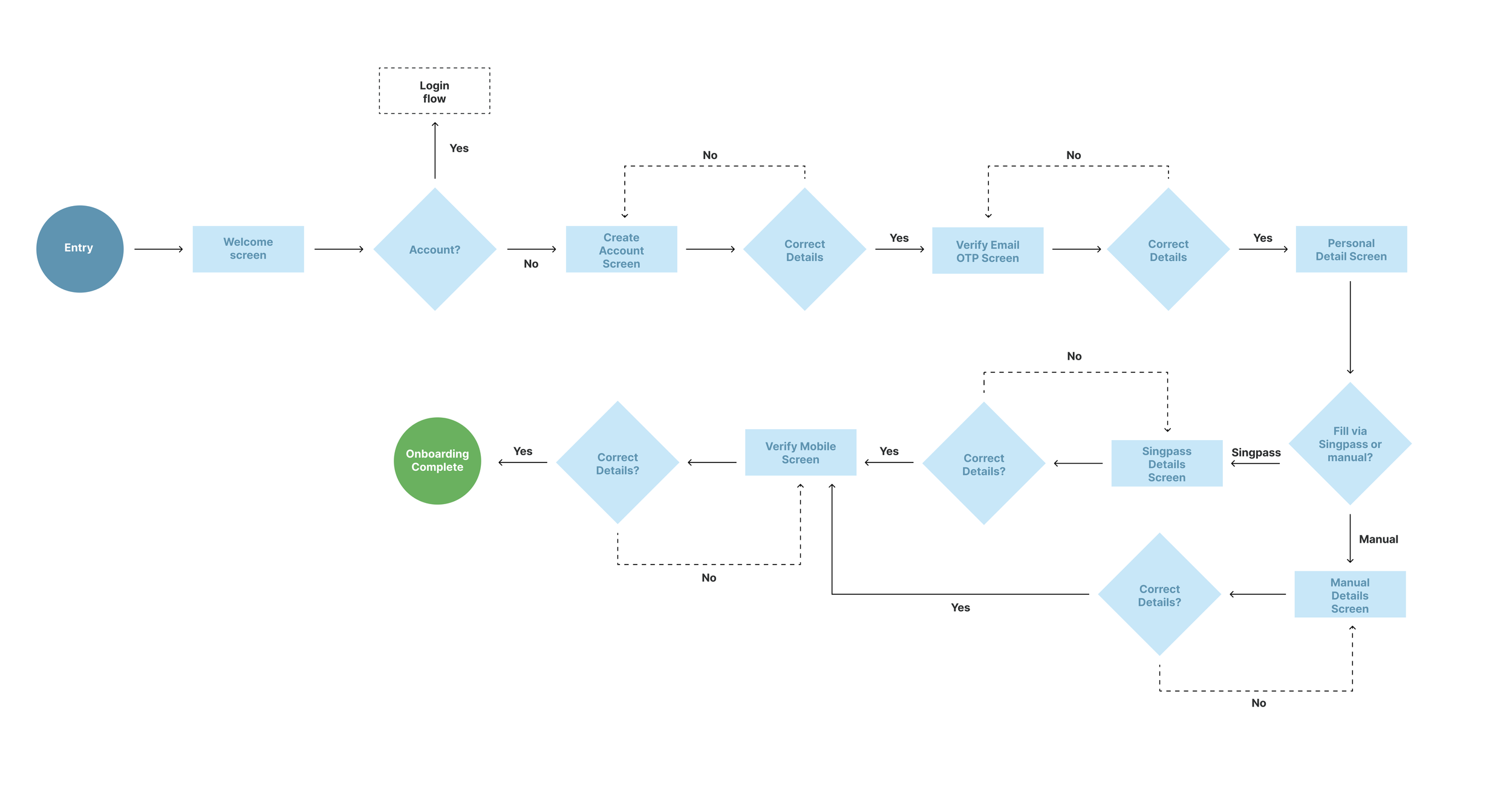 To help get a clearer picture, I charted out the user-flow for the current onboarding process:
